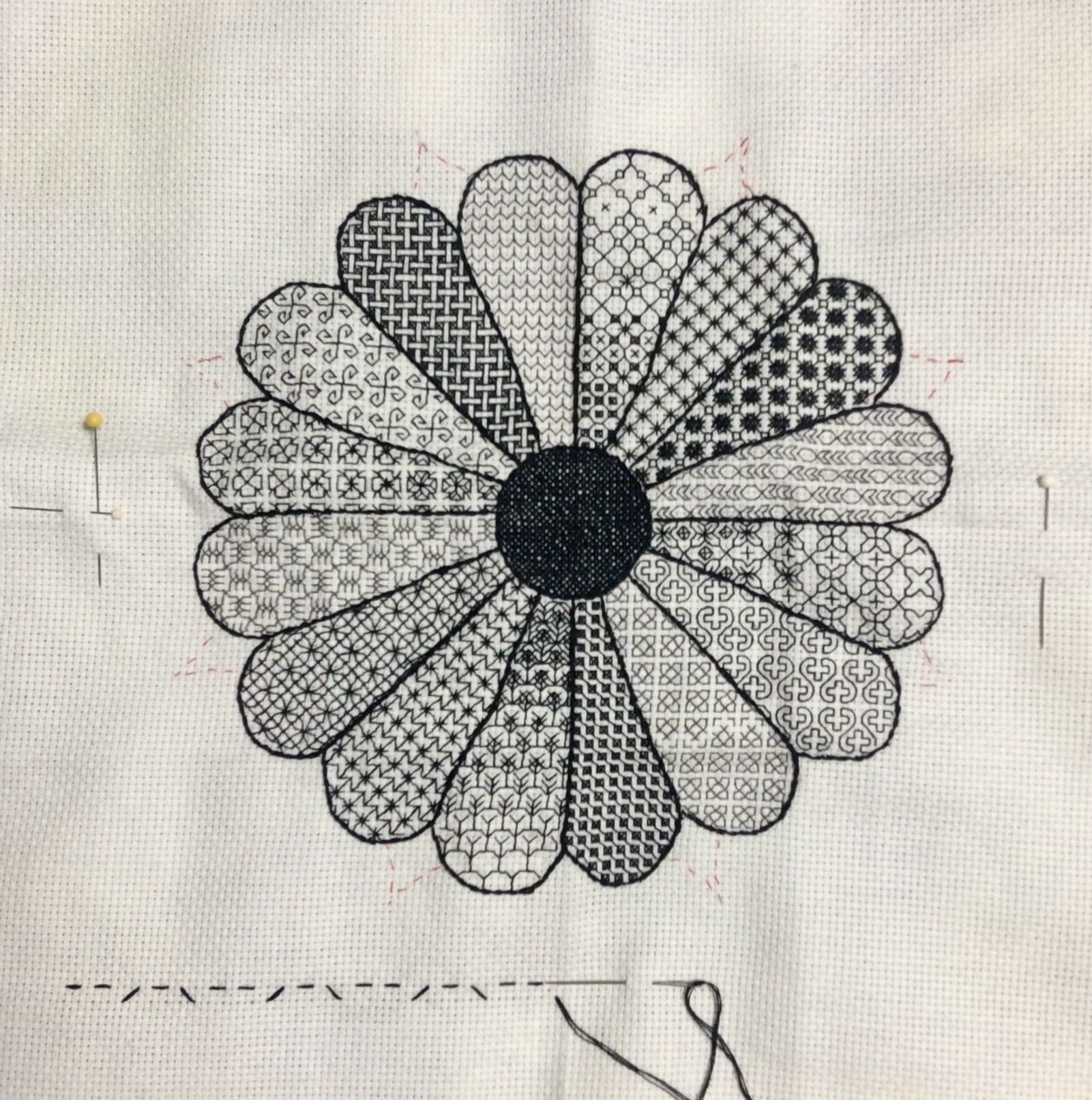 You have been busy! So much lovely embroidery to see. I hope the blackwork border works out for you. It looks beautiful so far.