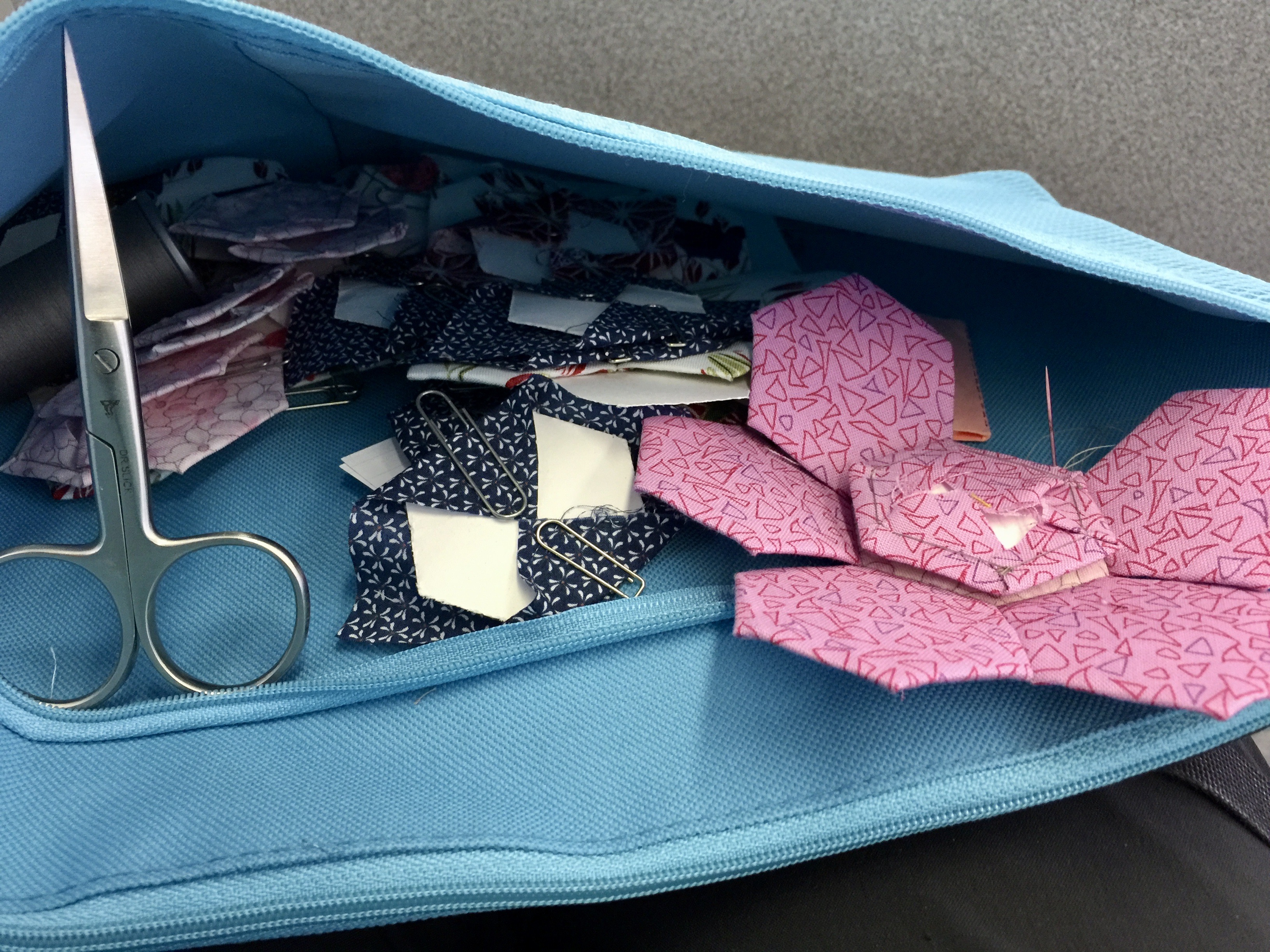 I left my home at 4:45 am to walk to the train station and get the 5:39 am train, heading west.  I had a long day ahead with many local trains to ride, so I brought along my hexagons to work on.