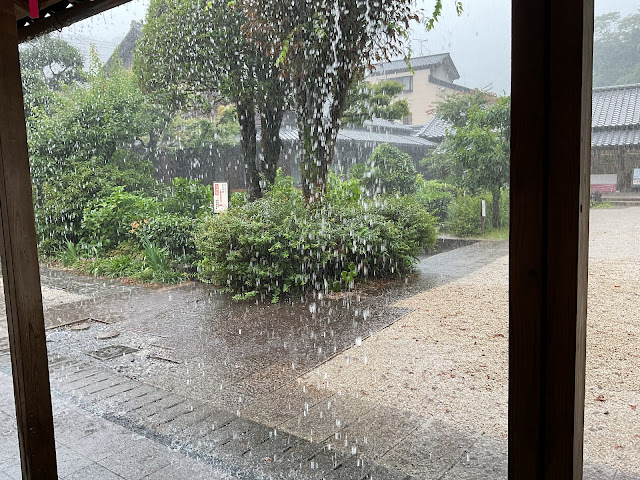 The frog on the railing was small and almost cute. This frog next to the shrine building was big and made me jump.